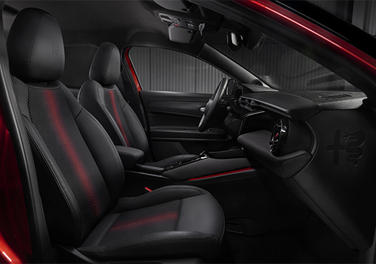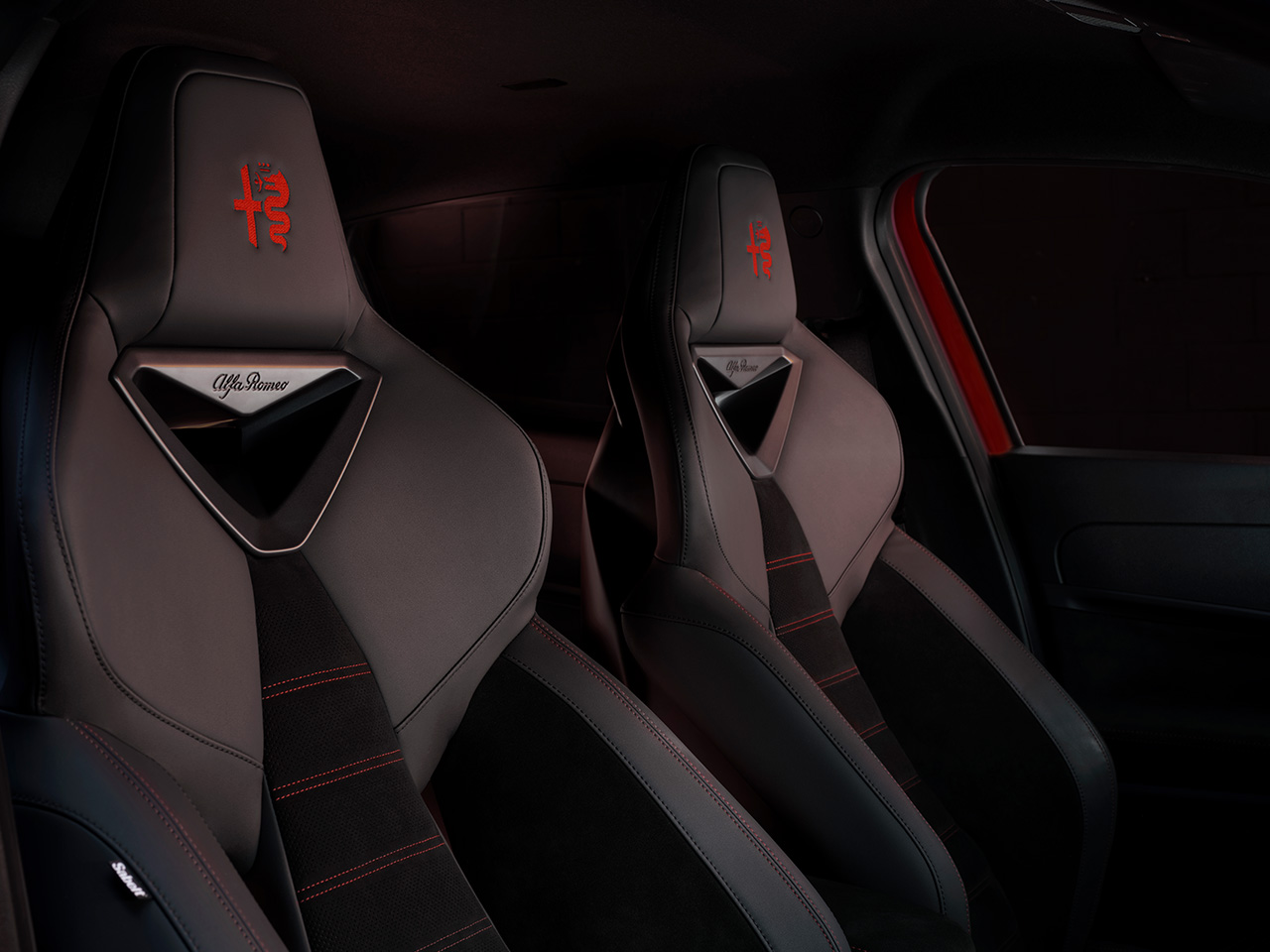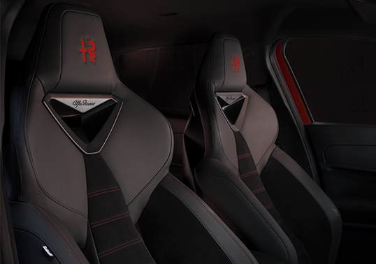 Spiga sēdekļiem ir izteiksmīga melna un sarkana auduma apdare, radot zīmīgo Scudetto efektu. Šie sēdekļi ir elektroniski regulējami, un papildu komfortam tie ir aprīkoti ar masāžas funkciju.