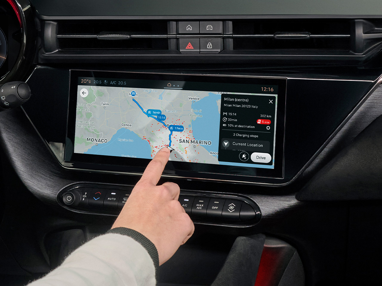 Alfa Romeo Junior Elettrica pilnībā pārvērtīs Jūsu elektriskos braucienus, izmantojot modernākās funkcijas, kas īpaši izstrādātas, lai uzlabotu Jūsu komfortu un sirdsmieru. Alfa Connect pakalpojumi paver iespēju klāstu, kas īpaši izstrādāts elektromobiļu vadītājiem. Lietojot TomTom® nodrošināto elektromobiļu maršrutēšanu vai jauno ë-Routes lietotni, Jūsu braucieni ārpus elektromobiļa autonomijas tiek nevainojami saplānoti, optimālākajam maršrutam automātiski iekļaujot nepieciešamās uzlādes pieturvietas un reāllaika satiksmes datus. Izmantojiet uzlādes staciju meklētāju, kas atvieglo publisko uzlādes staciju atrašanu un sniedz detalizētu informāciju par to pieejamību, savienotājiem, tarifiem, jaudas līmeņiem un adresēm. Ar e-tālvadības funkciju varat pilnībā kontrolēt savu elektromobili un attālināti piekļūt tādām funkcijām kā “uzlādēt tūlīt”, “uzlādes grafiks” un “uzlādes līmeņa iestatījumi”, turklāt tas viss ir ērti un viegli sasniedzams.