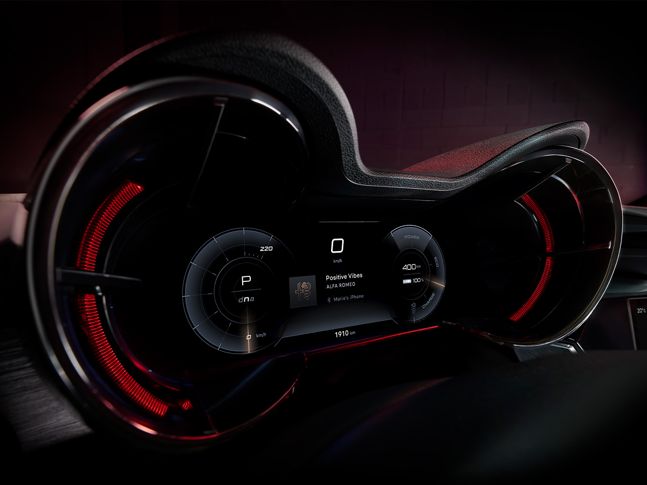 10,25" mērinstrumentu panelis Cannocchiale ir kā portāls uz nepieredzētu braukšanas pieredzi, piedāvājot vadītājam intuitīvu informāciju un individuāli pielāgojamus vadības elementus.