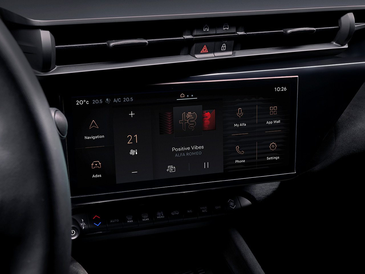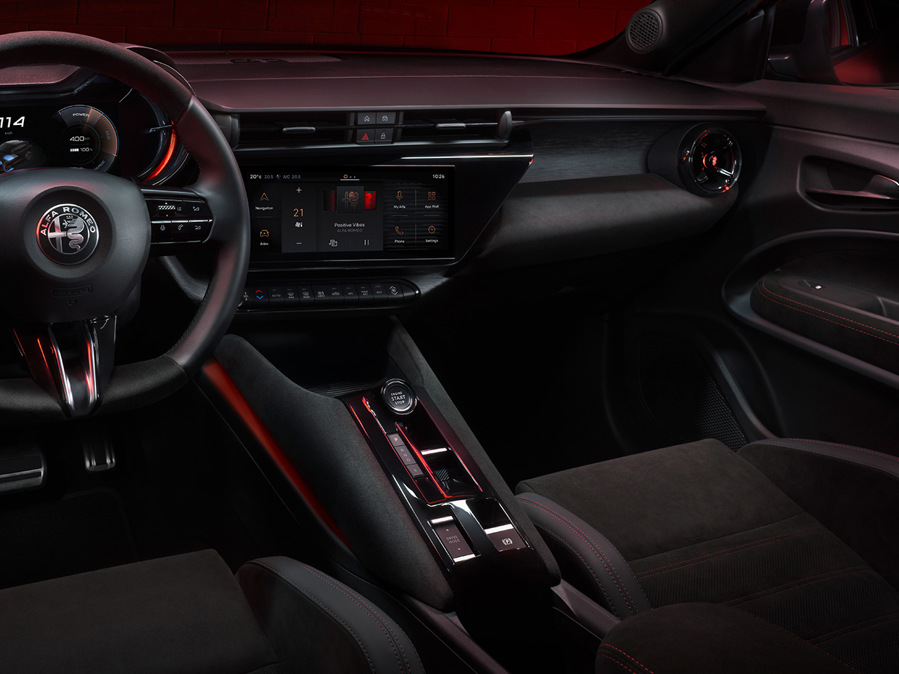 Alfa Romeo Junior Elettrica salons ir meistarīgi veidots, domājot par visām autovadītāja ērtībām, un tajā nevainojami integrētas jaunākās tehnoloģijas ar ergonomisku dizainu un augstākās kvalitātes materiāliem, nodrošinot nepārspējamu braukšanas pieredzi.