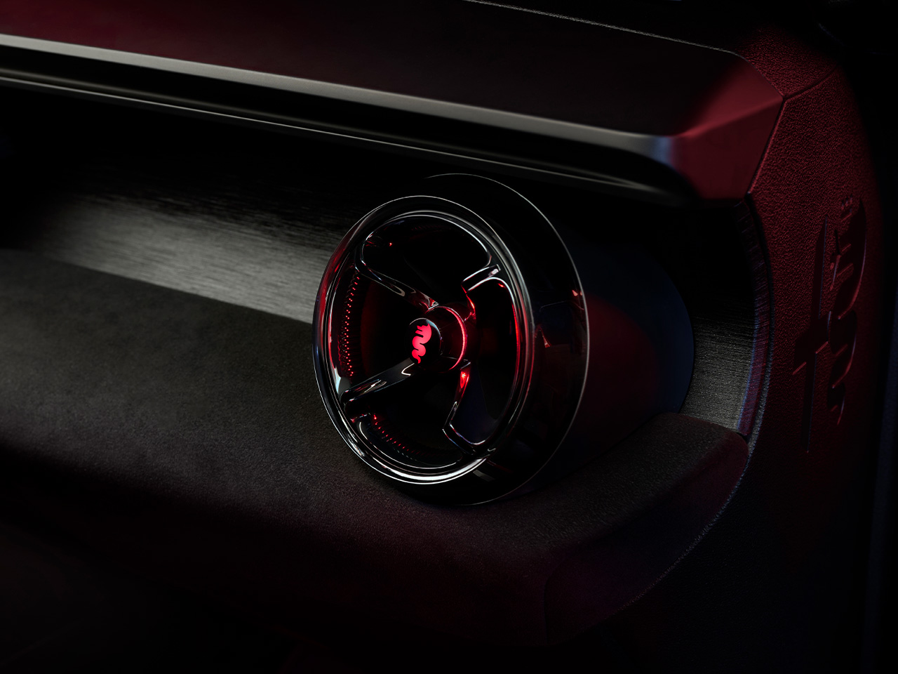 Leggenda izceļas ar tumšas krāsas dizainu un matētām detaļām ar digitāliem risinājumiem, godinot Alfa Romeo leģendāros automobiļus.