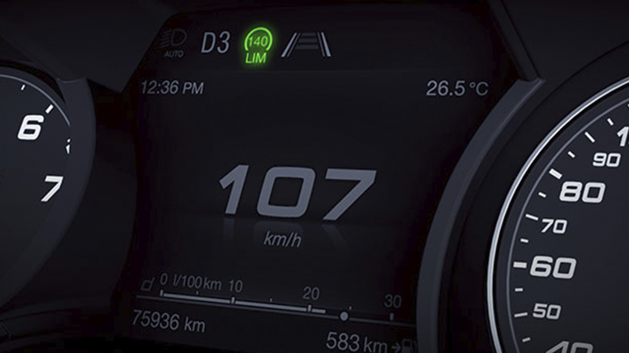 Ceļa zīmju atpazīšanas sistēma reāllaikā informē vadītāju par gaidāmajām atļautā braukšanas ātruma izmaiņām un apdzīšanas aizlieguma zonām.