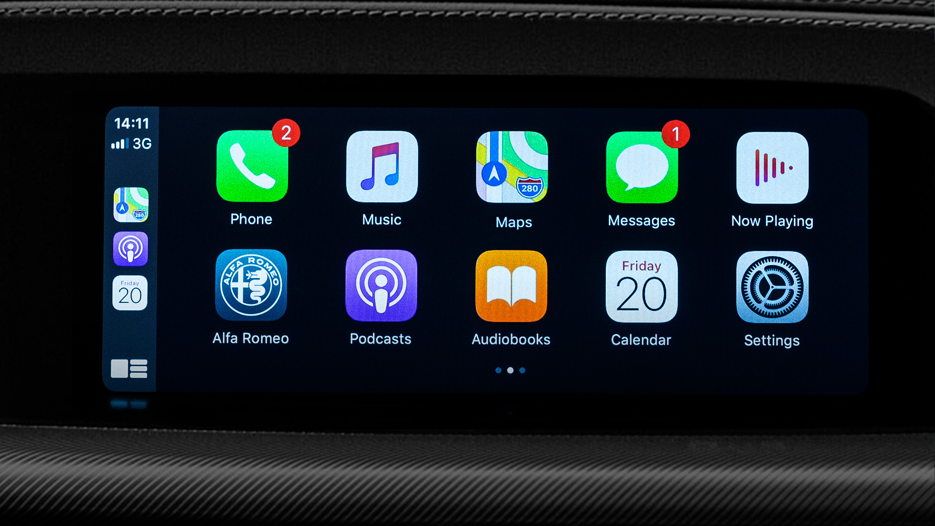 Pateicoties Apple CarPlay, Alfa Romeo Stelvio Quadrifoglio informējoši izklaidējošajā sistēmā iespējams izmantot visas iPhone funkcijas un lietotnes.