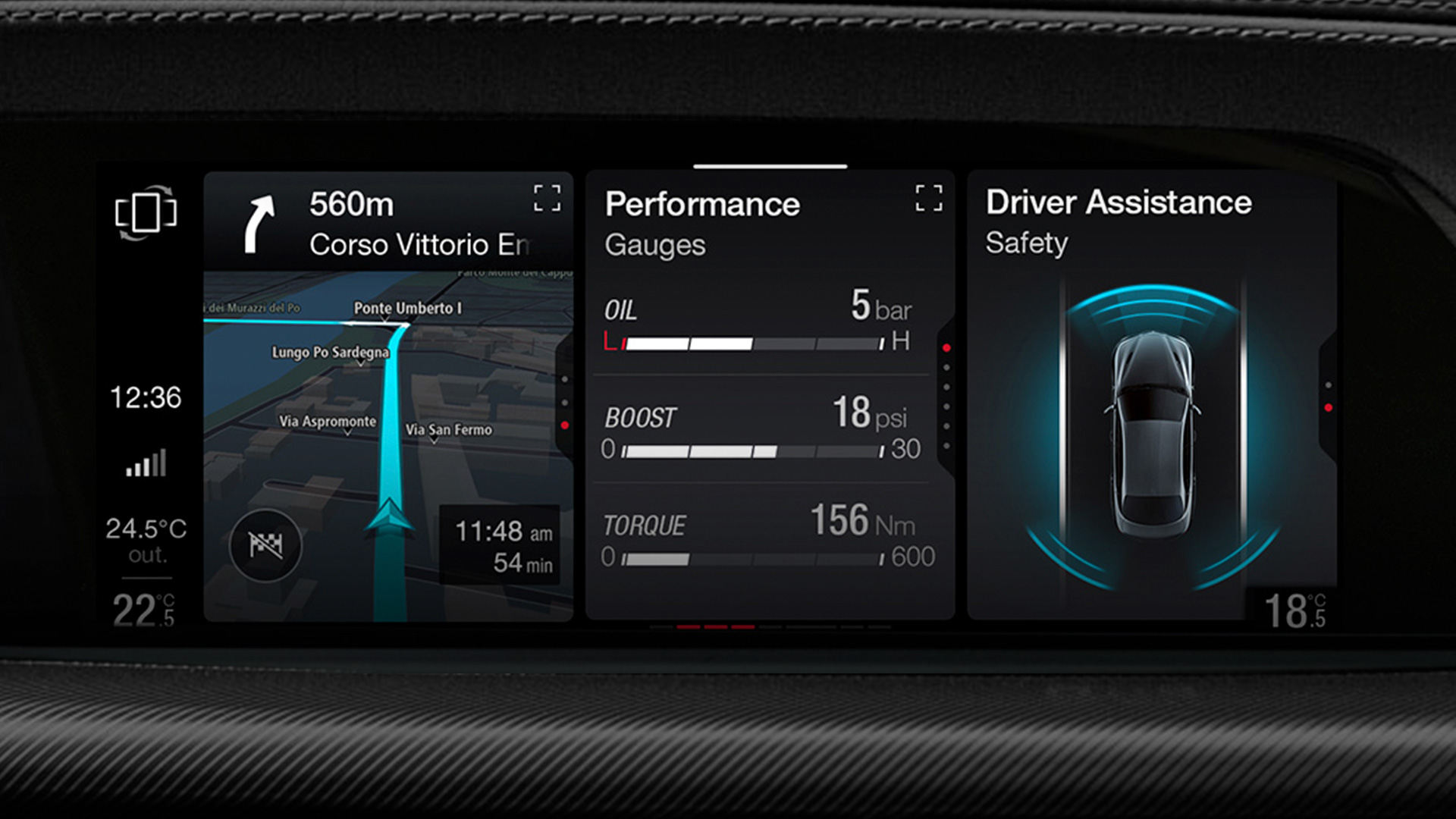 8,8 collu daudzskārienu displejs nodrošina intuitivitāti un izcilu reaģētspēju, kā arī ļauj skaidri saskatīt kartes, kontaktpersonu informāciju un automašīnas snieguma datus.